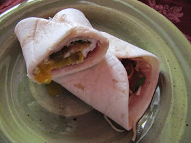 Fry up an egg in a non-stick skillet. Spread a light layer of mayonnaise on a warm flour tortilla. Layer on the ham, fried egg, shredded cheese, salsa, and cilantro. Roll it on up and enjoy!